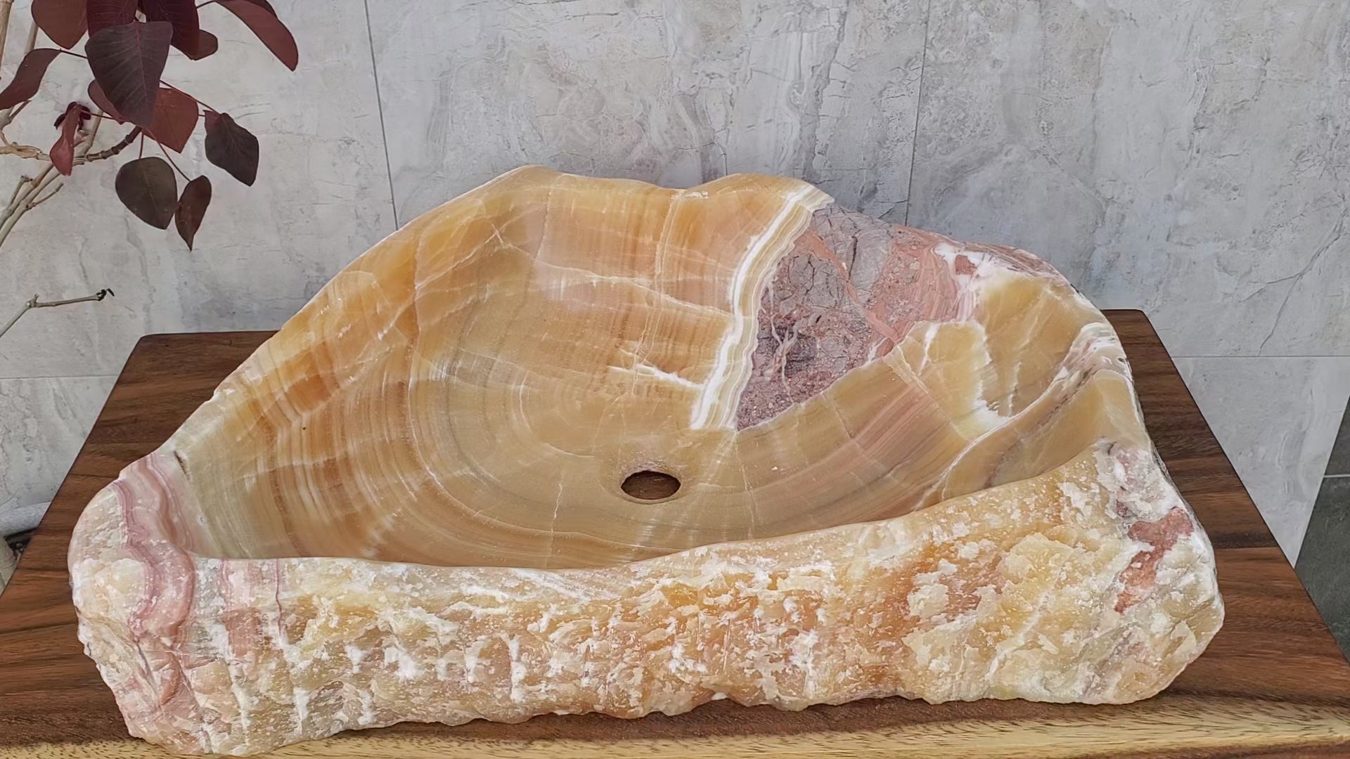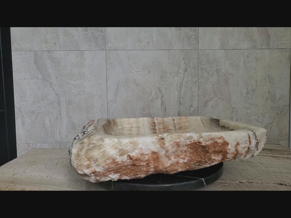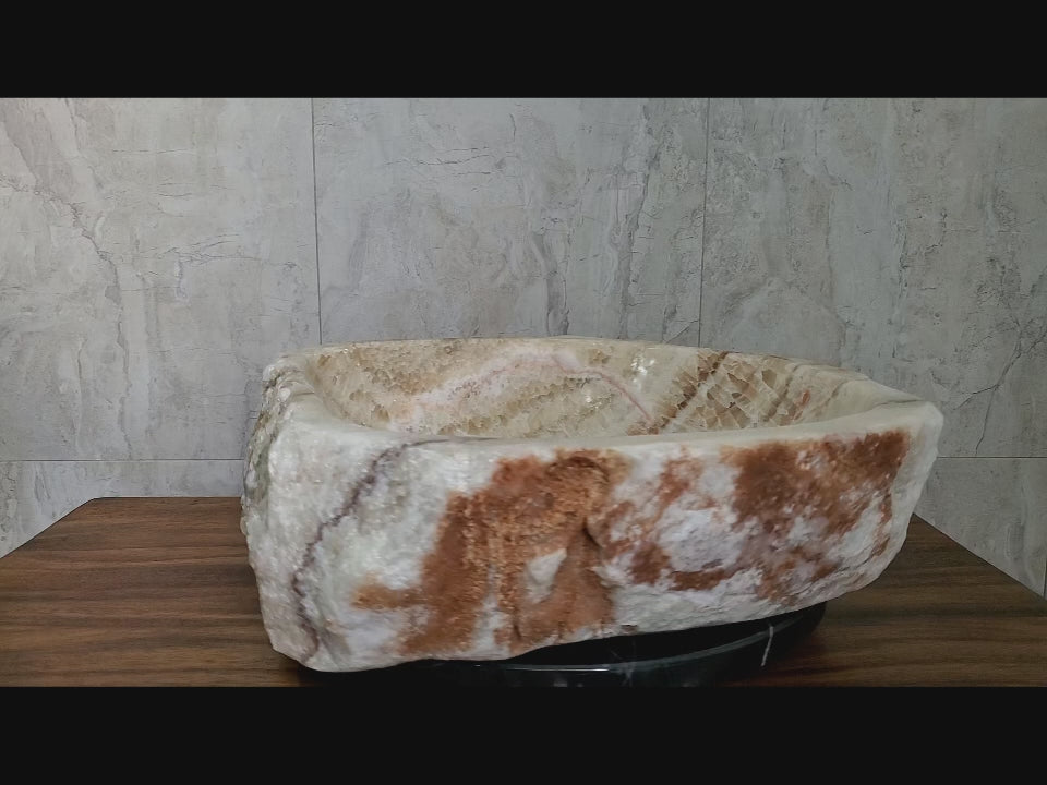 S14_48 Honey Onyx Stone Vessel Bathroom Sink - 24 x 19 inch