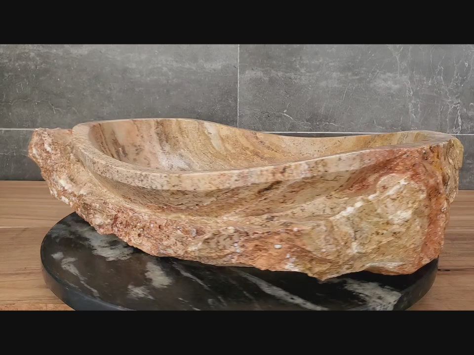 S11_14 Onyx and Travertine Stone Vessel Sink - Round