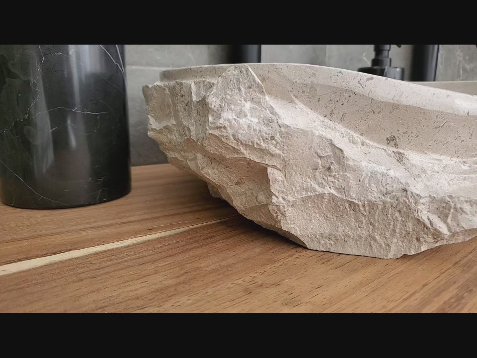 S7_04 Travertine Stone Bathroom Sink - Square