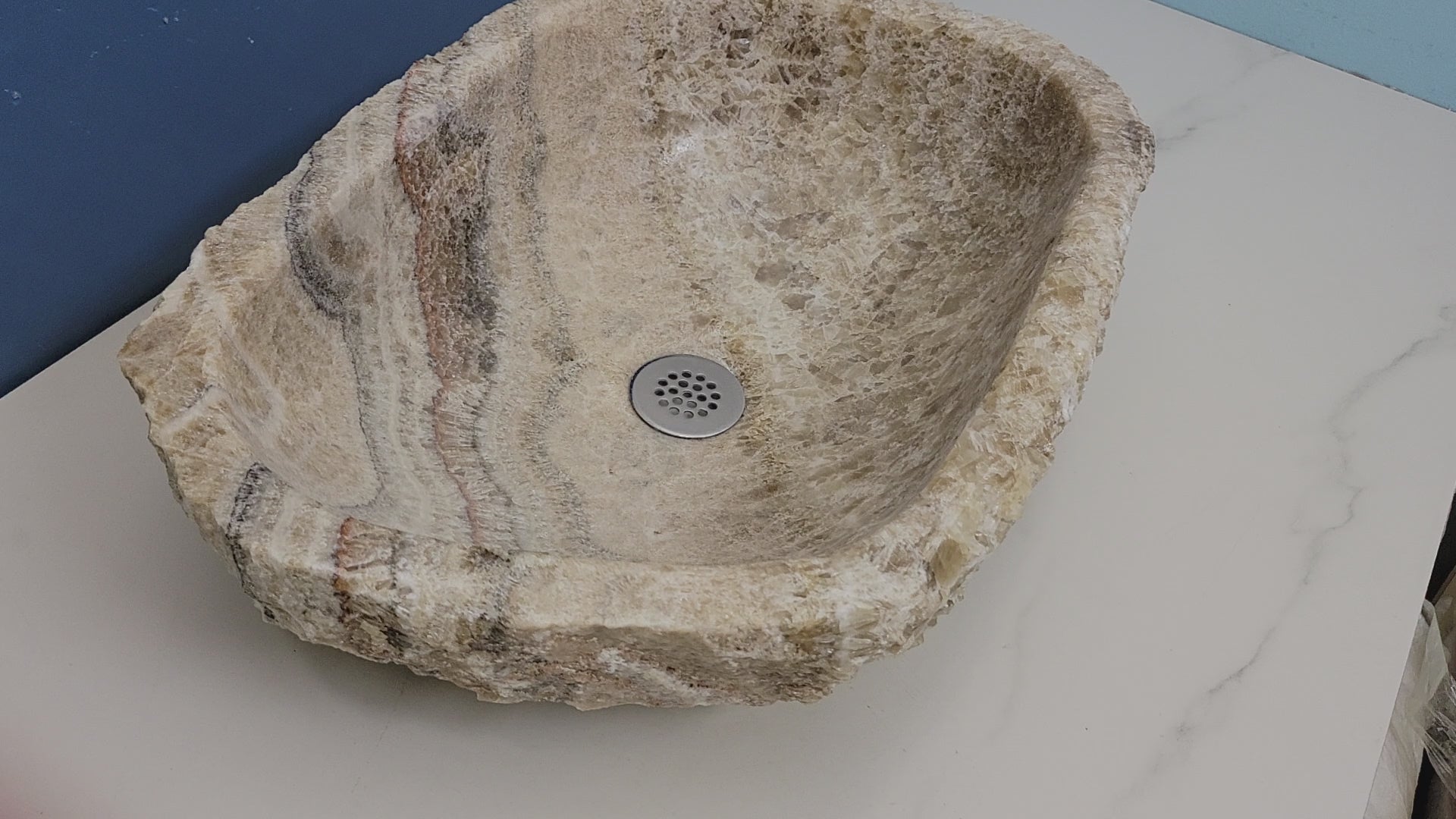 Bring natural beauty to your bathroom with this Onyx Stone AquaVessel Sink. Crafted from solid onyx, each sink features unique, organic patterns and textures for a one-of-a-kind look. Designed for countertop installation, it combines durability and functionality with rustic charm, adding warmth, character, and timeless elegance to any space.
