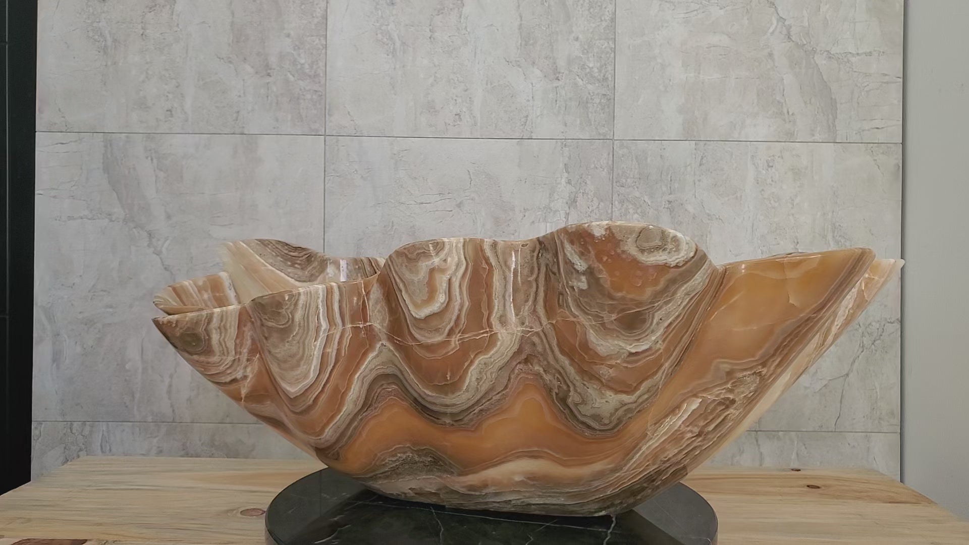 Elevate your bathroom with this Natural Onyx AquaVessel Sink, crafted from solid stone and uniquely shaped by nature. Each piece features organic veining and a smooth, hand-polished finish. Designed for countertop installation, this luxury basin adds timeless elegance, durability, and spa-like sophistication to any modern or upscale space.