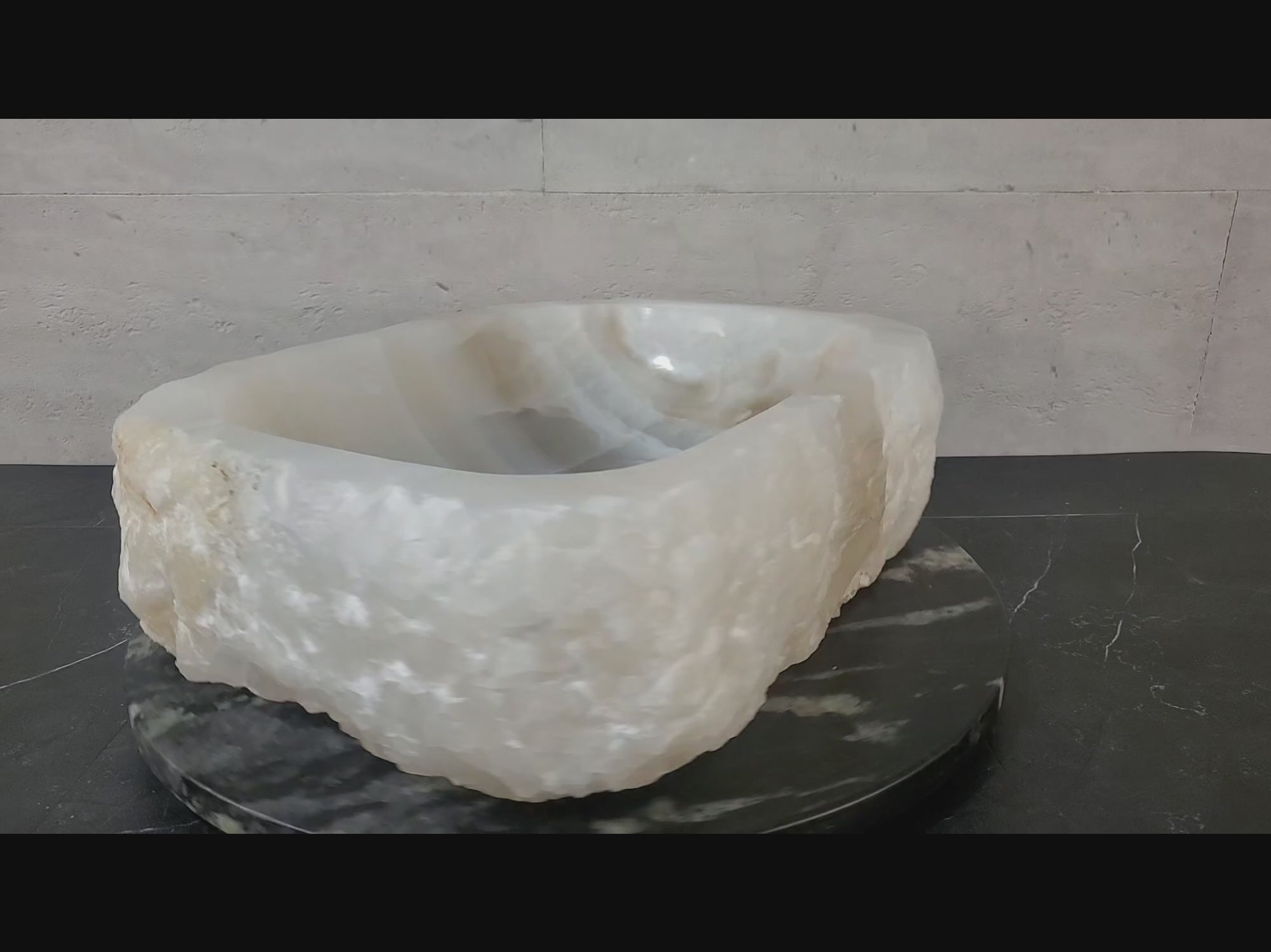 The White and Ivory Onyx Bathroom Vessel Sink is a stunning addition to any bathroom, blending natural beauty with modern design. This stone basin is crafted from premium white and ivory onyx, showcasing unique organic patterns that make each sink one-of-a-kind. The rustic, above-counter installation offers a stylish, elevated look. Ideal for both contemporary and traditional bathroom styles, this onyx vessel sink adds a luxurious, natural touch to your space.