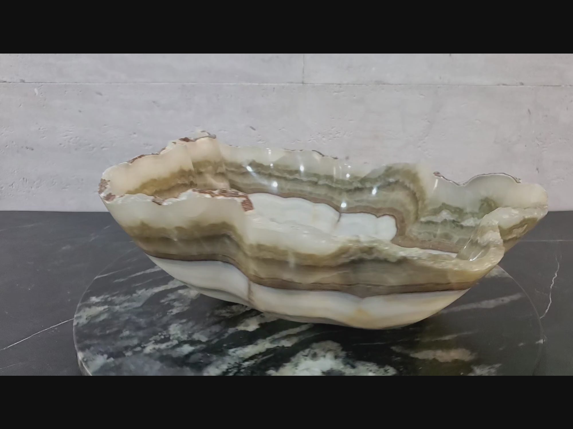 This finely crafted onyx stone vessel bathroom sink is unique. It features shades of white, gray, and rich browns is handmade from one solid piece of stone. You've found the sink you've been searching for so now it's time to start that remodel project. You will receive the sink in this picture. It is truly one of a kind.