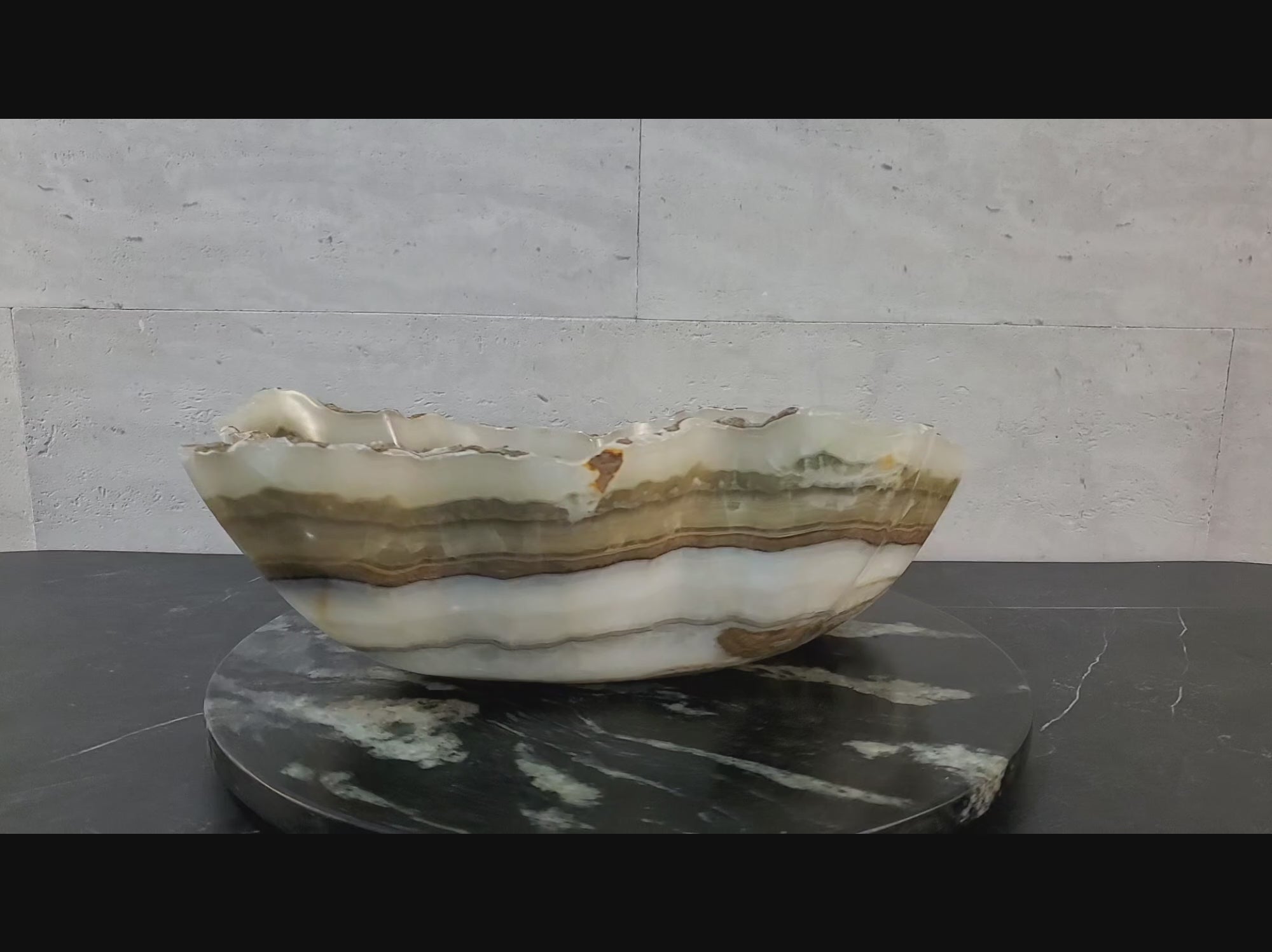 This finely crafted onyx stone vessel bathroom sink is unique. It features shades of white, gray, and rich browns is handmade from one solid piece of stone. You've found the sink you've been searching for so now it's time to start that remodel project. You will receive the sink in this picture. It is truly one of a kind.
