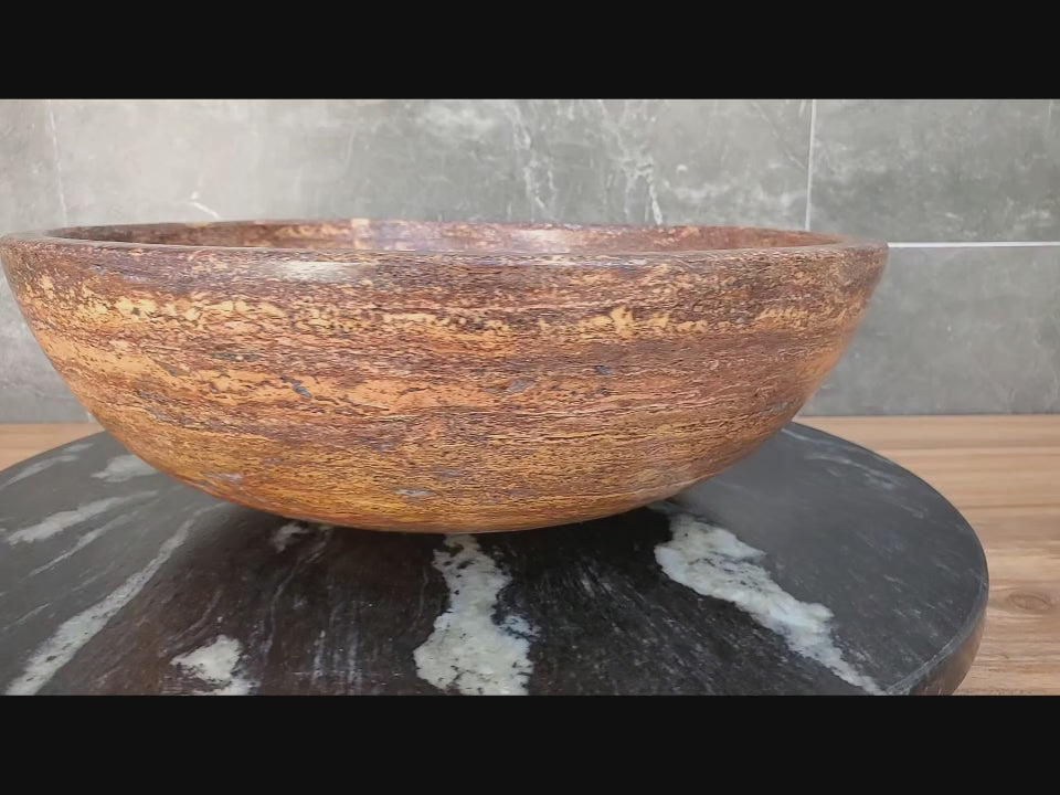 Crafted with care from exquisite travertine stone, this round vessel sink boasts a refined, timeless aesthetic. Hand-chiseled to perfection, its classic beauty is captivating. You will receive the sink in these pictures. It is truly one of a kind.