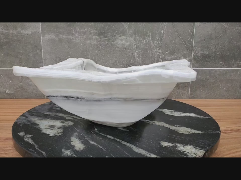 Elevate your bathroom with this Natural Onyx AquaVessel Sink, crafted from solid stone and uniquely shaped by nature. Each piece features organic veining and a smooth, hand-polished finish. Designed for countertop installation, this luxury basin adds timeless elegance, durability, and spa-like sophistication to any modern or upscale space.