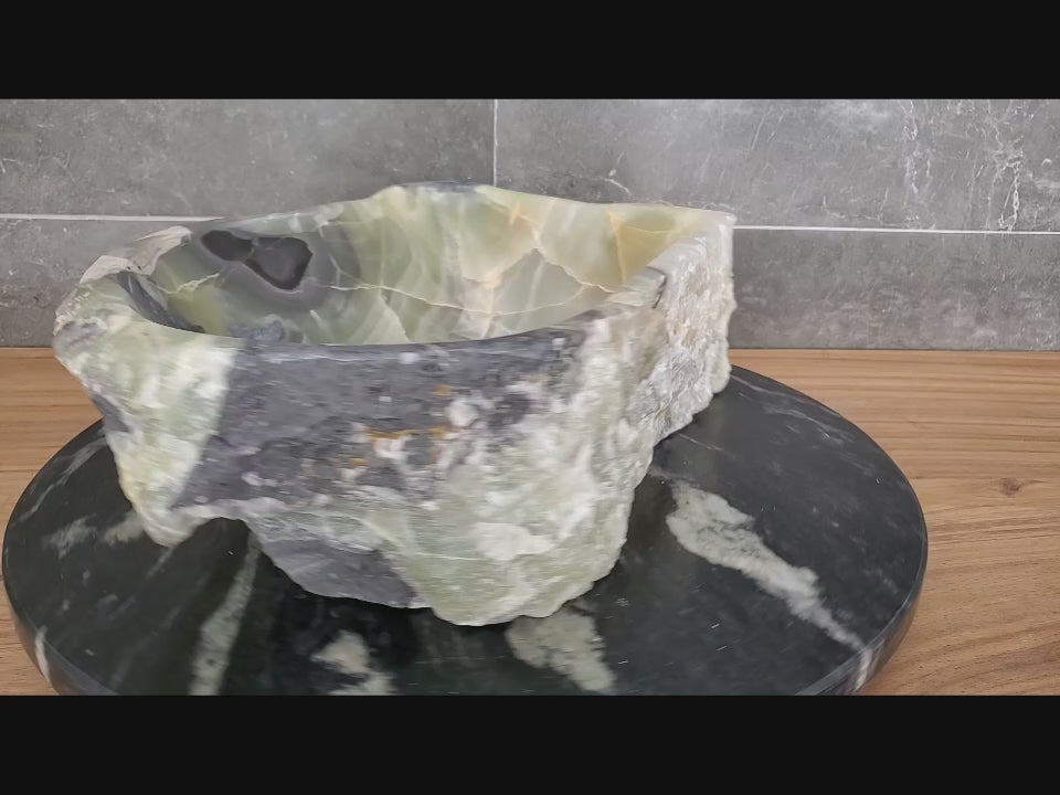 Elevate your bathroom with our stunning onyx vessel sink. This unique sink features a mesmerizing blend of green and gray, creating a luxurious and sophisticated focal point for your space. The natural patterns in the onyx ensure that each sink is one-of-a-kind, adding chic elegance and individuality to your bathroom decor. With its eye-catching design and high-quality craftsmanship, this vessel sink effortlessly combines functionality and aesthetic appeal, making it a stylish choice for any modern or traditional bathroom.