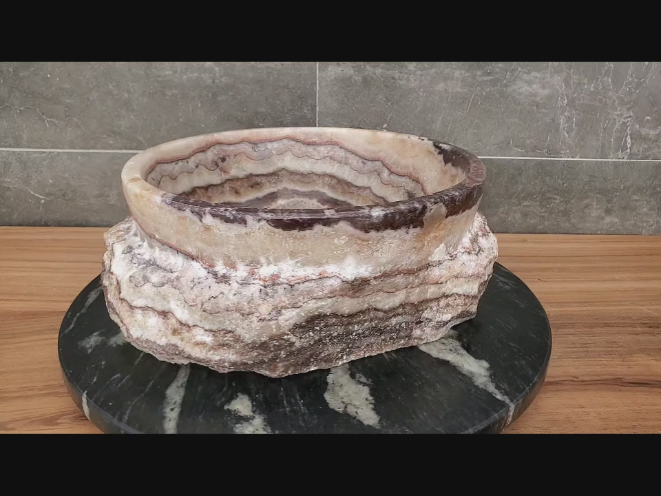 Bring natural beauty to your bathroom with this Onyx Stone AquaVessel Sink. Crafted from solid onyx, each sink features unique, organic patterns and textures for a one-of-a-kind look. Designed for countertop installation, it combines durability and functionality with rustic charm, adding warmth, character, and timeless elegance to any space.