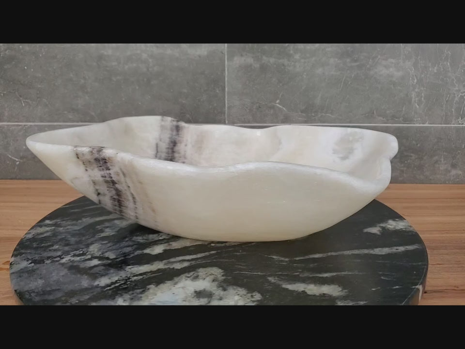 Elevate your bathroom with this Natural Onyx AquaVessel Sink, crafted from solid stone and uniquely shaped by nature. Each piece features organic veining and a smooth, hand-polished finish. Designed for countertop installation, this luxury basin adds timeless elegance, durability, and spa-like sophistication to any modern or upscale space.