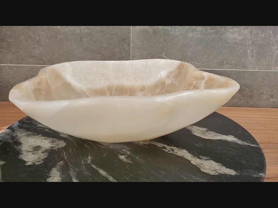 This handmade vessel sink is a work of art. Onyx & Marble are elegant and natural rocks widely used for bathroom décor and bathroom finishes. The neutral beige and white stone color will provide the perfect contemporary or rustic finish for your project. The natural variation in lines, colors, and textures make each hand basin unique. You will receive the exact sink pictured. It is truly one of a kind.