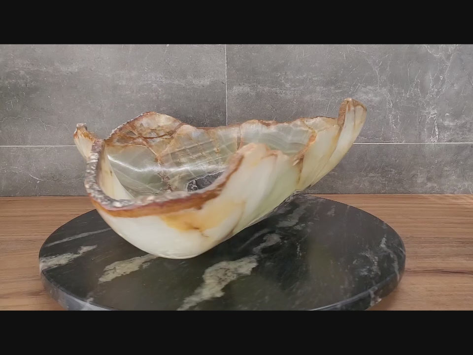 Experience stunning luxury with this gorgeous onyx stone vessel bathroom sink. Crafted from green onyx stone, its timeless design refines your space, so experience quality with this timeless piece. You will receive the sink in this picture. It is truly one of a kind. Your purchase supports artisans in Central Mexico.