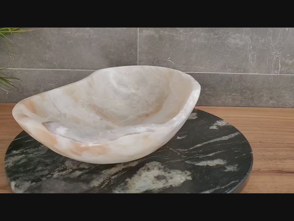 Elevate your bathroom with this Natural Onyx AquaVessel Sink, crafted from solid stone and uniquely shaped by nature. Each piece features organic veining and a smooth, hand-polished finish. Designed for countertop installation, this luxury basin adds timeless elegance, durability, and spa-like sophistication to any modern or upscale space.