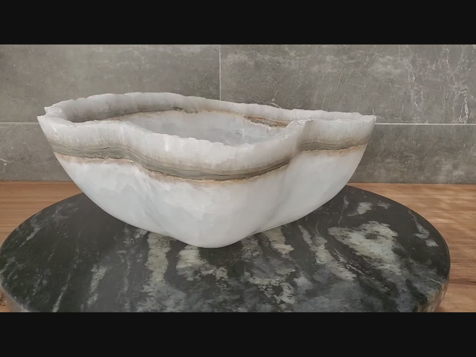 Experience design luxury with this gorgeous onyx stone vessel bathroom sink. Crafted from transparent white onyx stone with gray accent, its timeless design refines your space, so experience quality with this timeless piece. You will receive the sink in this picture- it is truly one of a kind. Your purchase supports artisans in Central Mexico.