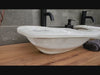 Make a statement with this one-of-a-kind White and Gray onyx vessel sink set. Handcrafted with distinctive transluctent onyx, this set adds a unique flair to any master bathroom. This an exclusive gift for modern rustic homeowners who appreciate quality and style. You will receive the sinks in this picture. Your purchase supports artisans in Central Mexico.